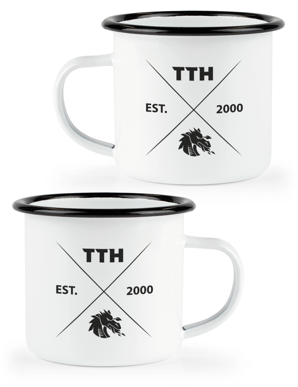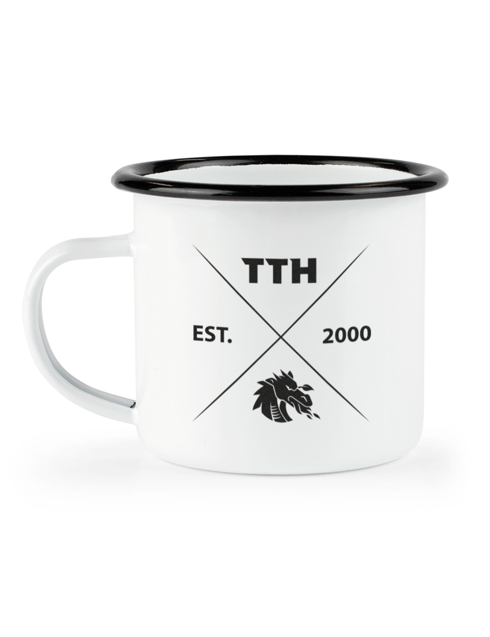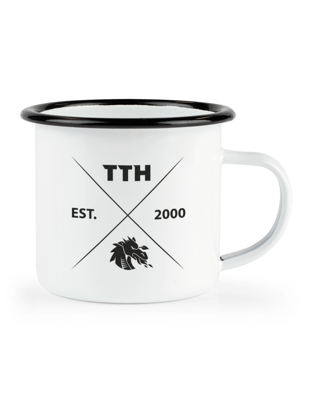Start dagen med klubånd. Dette TTH-emaljekrus med logo er perfekt til din kaffe, kakao eller te, uanset om du er hjemme eller på jobbet.