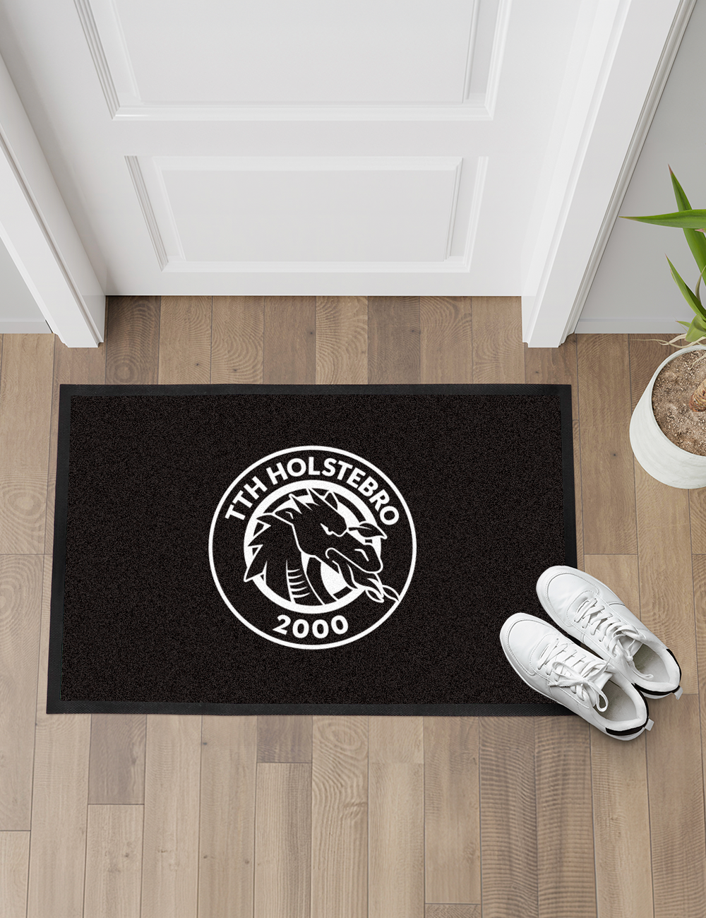 Vis din støtte til TTH allerede ved hoveddøren. Denne stilrene dørmåtte med det ikoniske TTH-logo er perfekt til både entré, bryggers eller overdækket udendørs brug. Måtten kombinerer et enkelt udtryk med praktisk funktion og holder effektivt snavs og fugt ude.